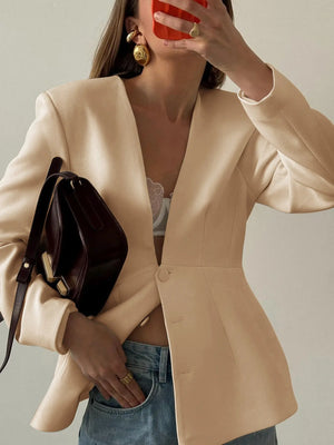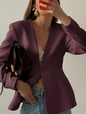 Command the room without raising your voice. This luxe blazer is precision-cut from a compact stretch-wool that holds its razor-sharp lines from dawn briefings to after-dark cocktails. Peak lapels elongate the frame, while lightly padded shoulders deliver instant power structure—no bulk, just authority. The single-button stance nips the waist, and double back vents keep things fluid when you stride.