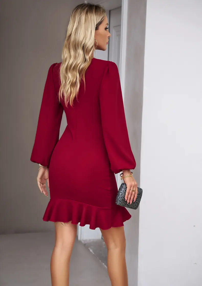 Pure Soft-Tone Puff-Sleeve Dress